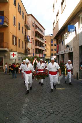 | Fioroni con i facchini per le vie della città |