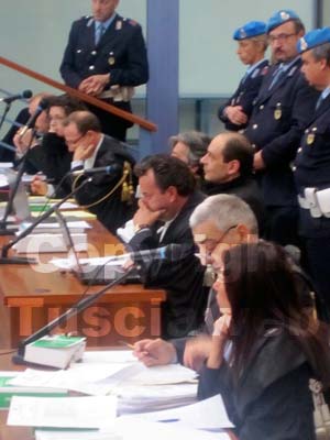 Alla fine, la seduta è stata aggiornata al 29 ottobre, ore 9, per l'ascolto del perito informatico Lorenzo Giampieri, della consulente Elena Pilli (che ha curato gli accertamenti sulle tracce di sangue in sede di incidente probatorio) e il consulente del pm. Quanto alla testimonianza del capitano Ciervo è stata rinviata a data da destinarsi.