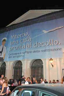 Anche io mi permetterei di fare un appello al buon gusto dei viterbesi affinché venga tolto il lenzuolo dal teatro che inneggia al volo e fatto - credo - a spese del contribuente viterbese (benché qualcuno potrebbe desiderare rimanere coi piedi a terra).
