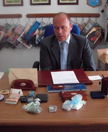 | Il capo della Mobile Zampaglione con la droga sequestrata |