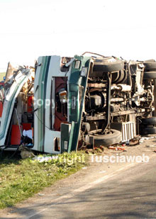In un lungo rettilineo ha incrociato un’autocisterna carica di gasolio che viaggiava in direzione Vetralla.